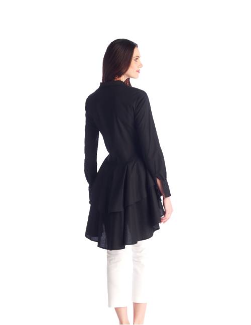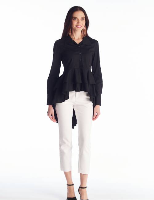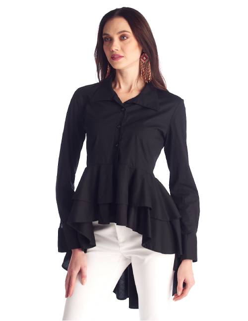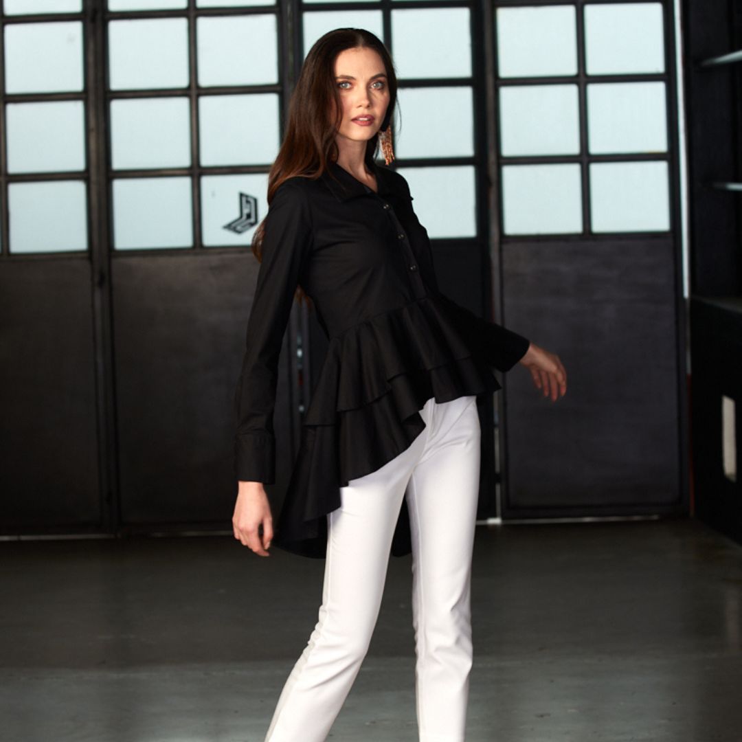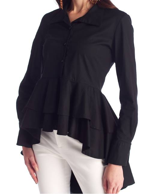 Blusa Asimétrica, Cuello Tipo Polo, Manga Larga, Con Caida Con Pliegues. Una Creacion Unica Que No Puede Faltar En Tu Guardaropa