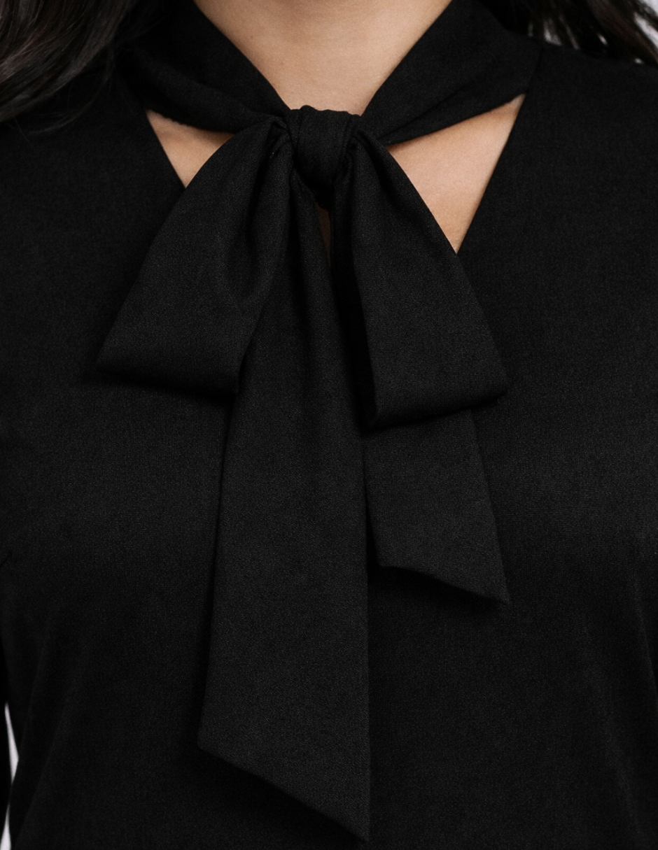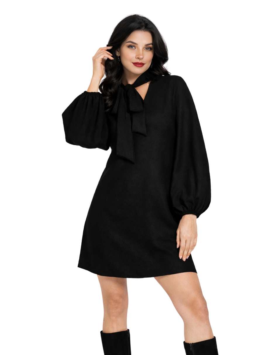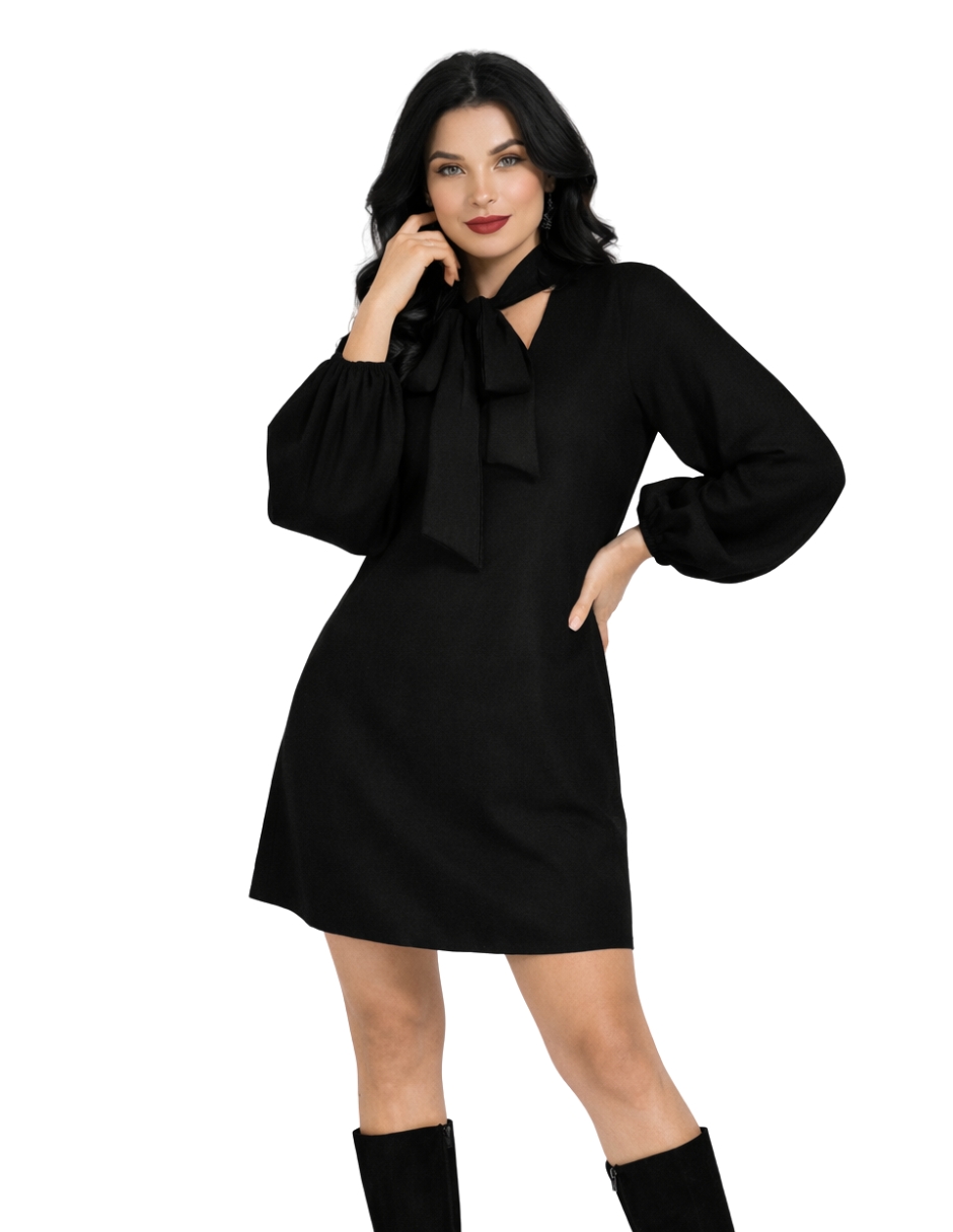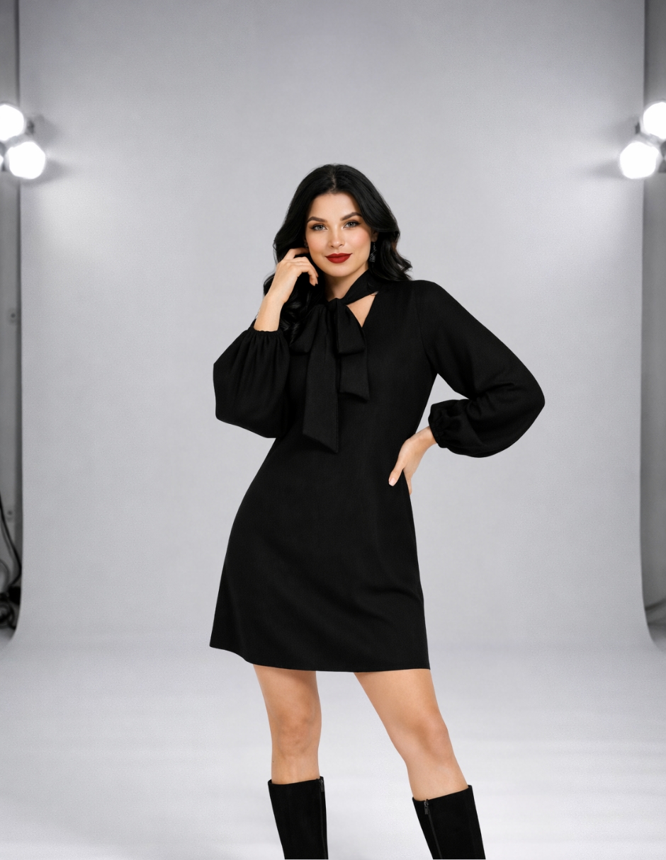 Este vestido resalta por su elegancia minimalista. El lazo al cuello añade un toque femenino y sofisticado, mientras que el corte fluido y la abertura en el escote le dan un aire moderno y cómodo. Perfecta para ocasiones formales o eventos donde se requiera un look chic pero relajado.